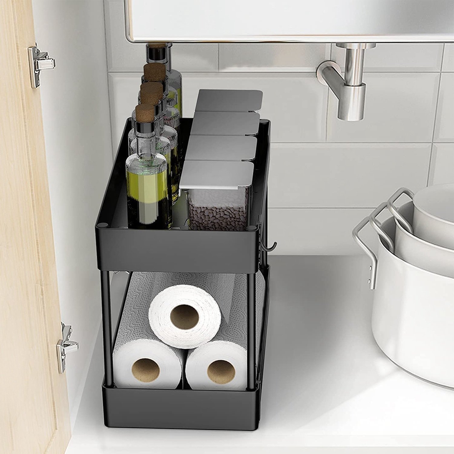 1 x 2-Tier Under Sink Rack with 4 Hooks