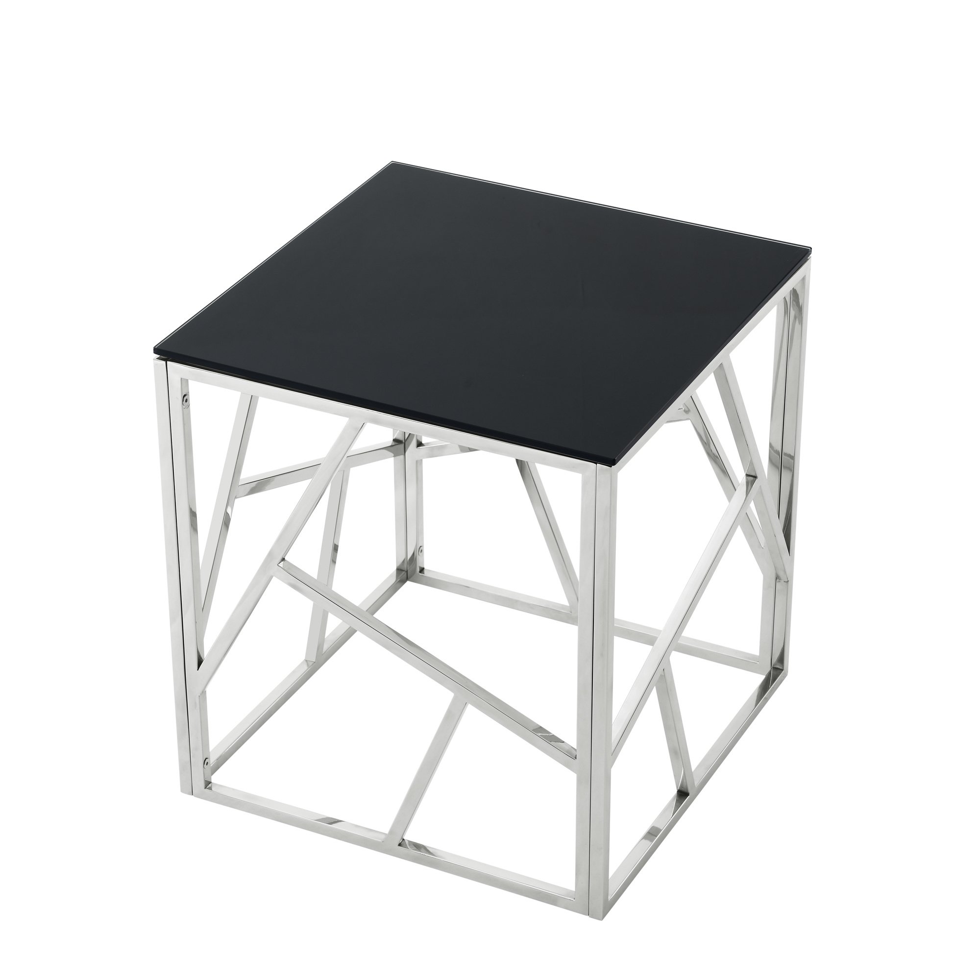 Home > 20 Inch Modern Glass End Table with Geometric Metal Frame, Accent Table Nightstand Furniture Corner Table for Living Room,Home Office,Bedroom - Chrome