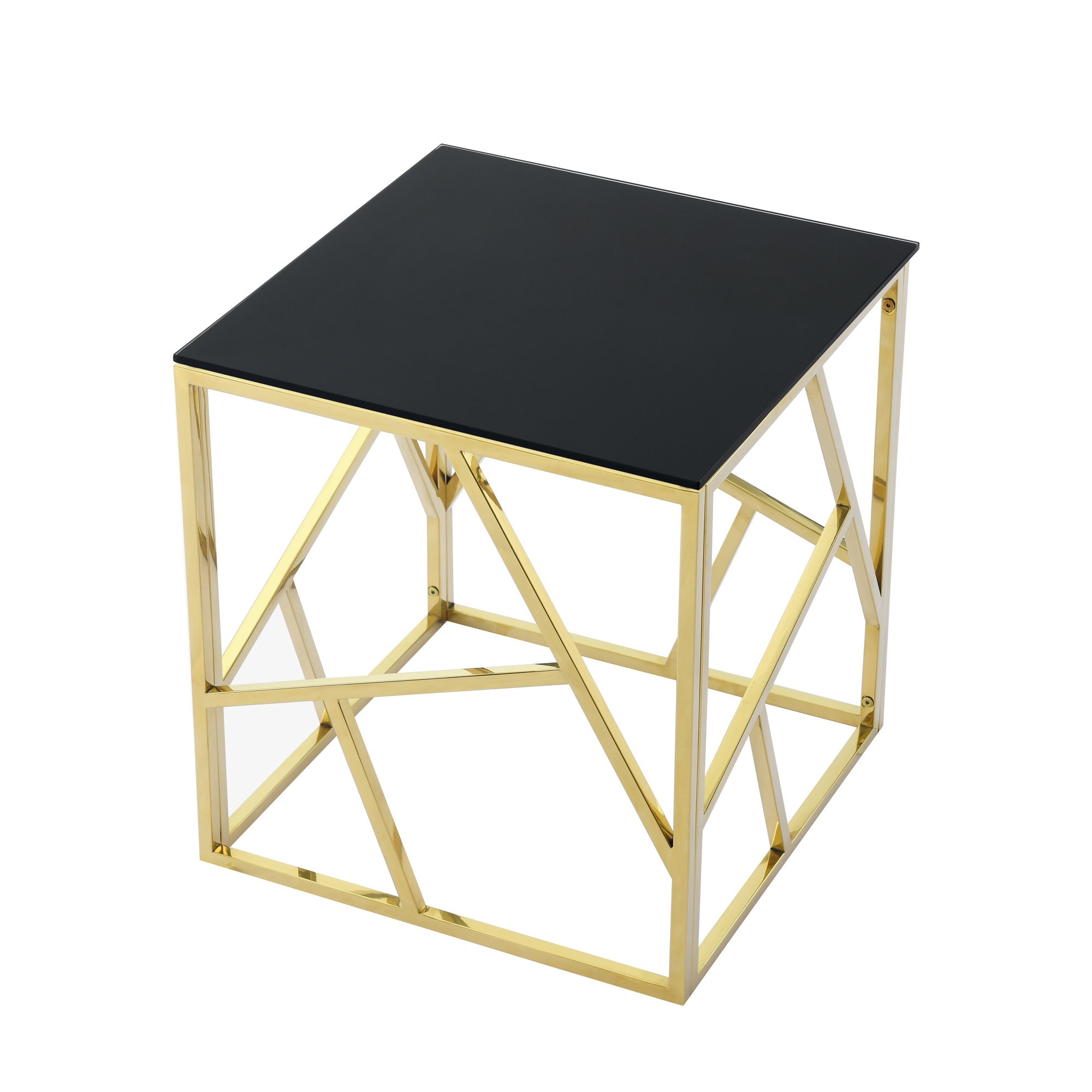 Home > 20 Inch Modern Glass End Table with Geometric Metal Frame, Accent Table Nightstand Furniture Corner Table for Living Room,Home Office,Bedroom - Gold