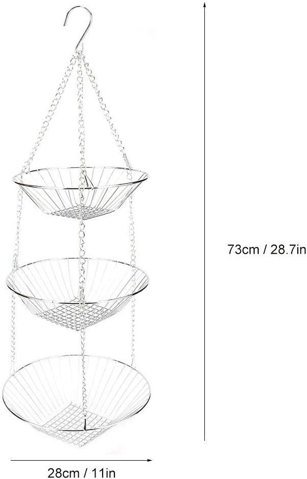 3-Layers Hanging Basket Stainless Steel Fruit Vegetable Flower Basket Storage Holder Home Decoration Basket Kitchen Hanging Rack