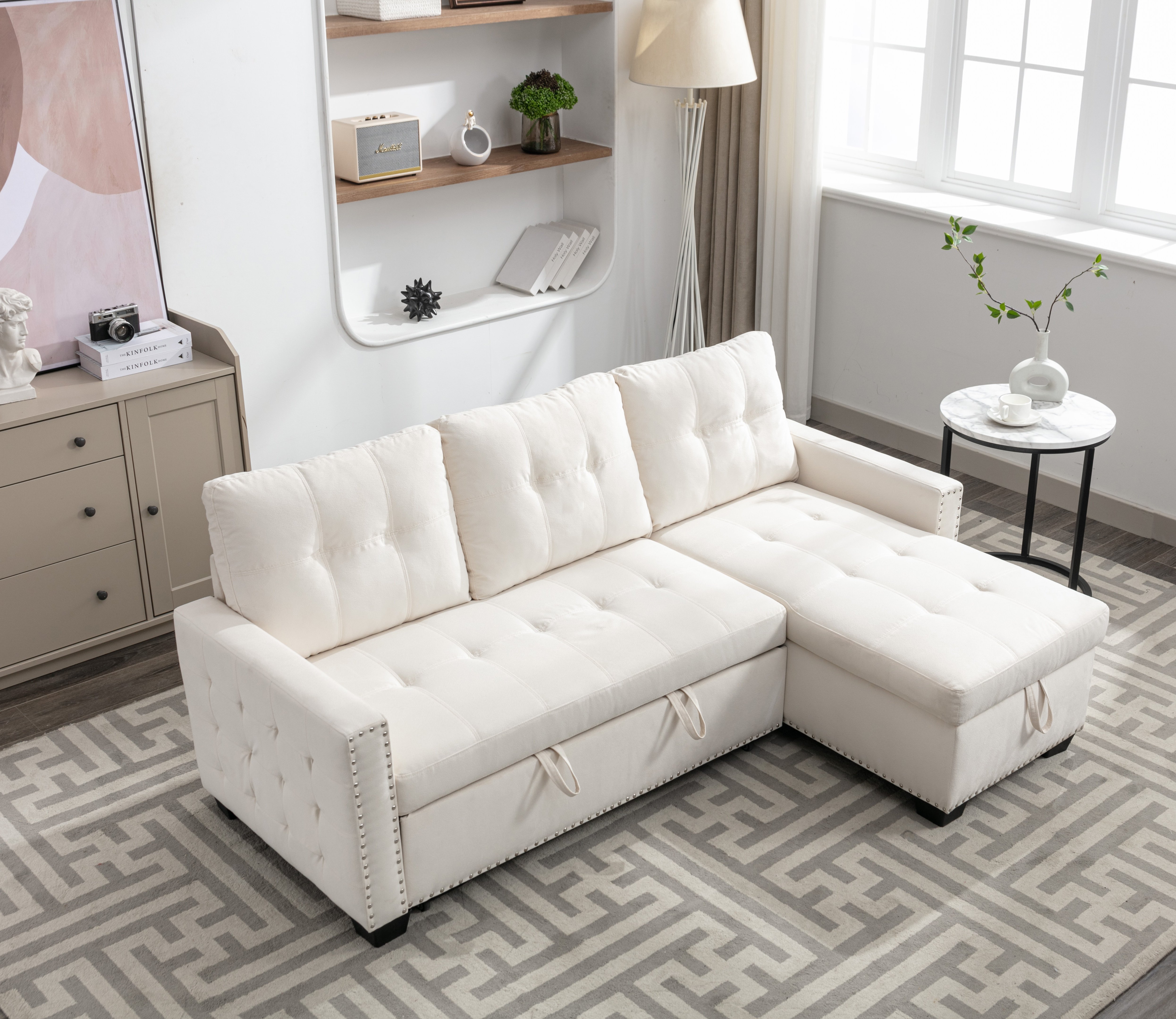 Functional : Pull out sleeper +Storage chaise+Removable cushions