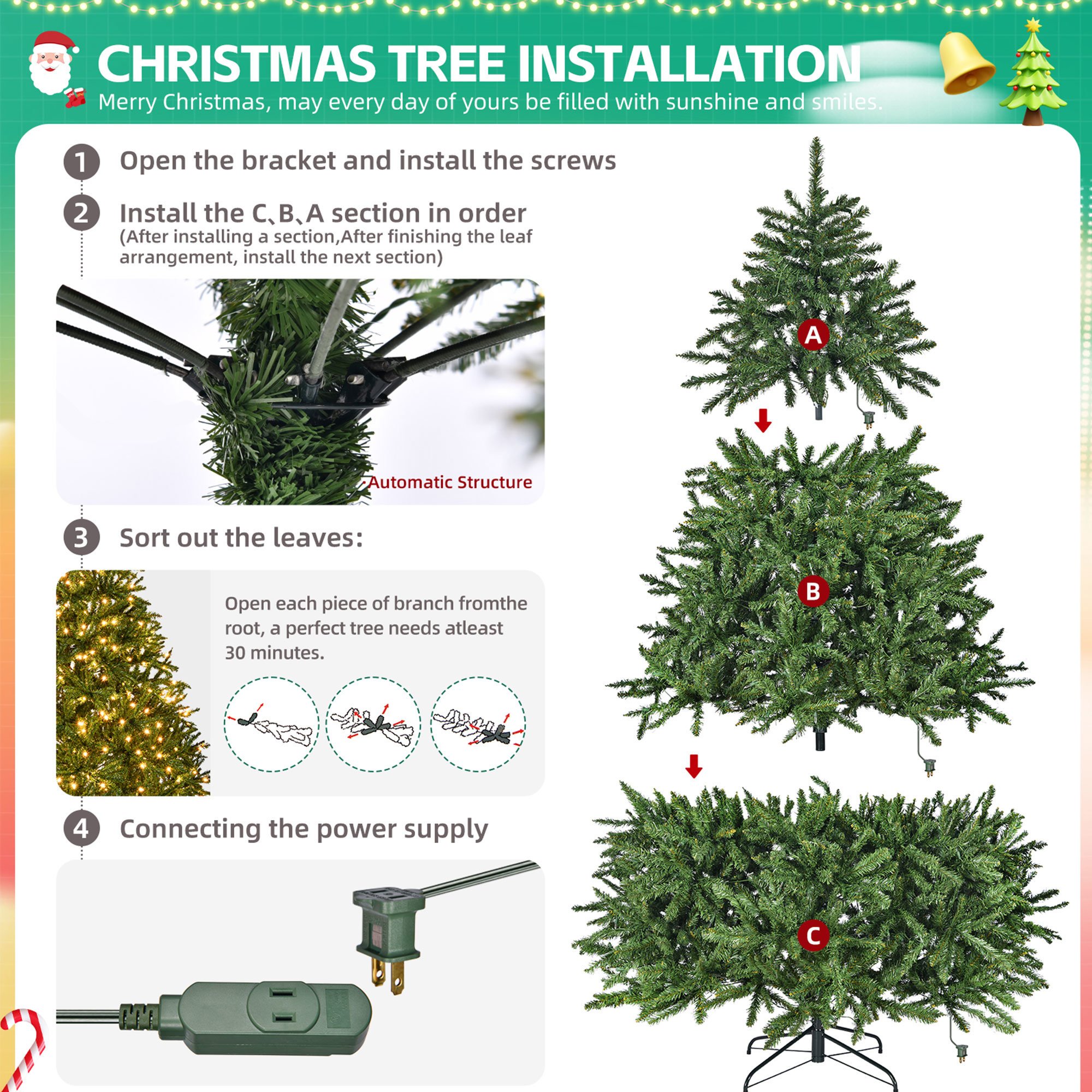 [PRE-LIT CHRISTMAS TREE -- Our pre-lit Christmas tree comes with 700 warm white LED lights, providing the ultra safety in use and shining lighting effect at nights. These LED lights are energy-saving and long lasting and its clear color effectively strengthen the celebration atmosphere and highlight the Christmas themes.