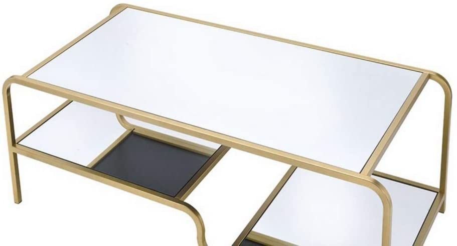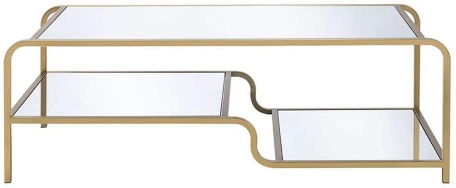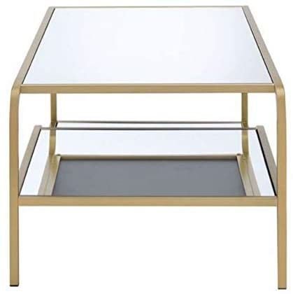 Romance : Center your seating arrangement around a sleek and sophisticated style with the Astrid occasional collection. Inspired by timeless materials; it features a mirror top with a stylish curving frame made of refined gold metal coating. An open base and floating shelf gives the piece an airy feel; but never sacrifices functionality.