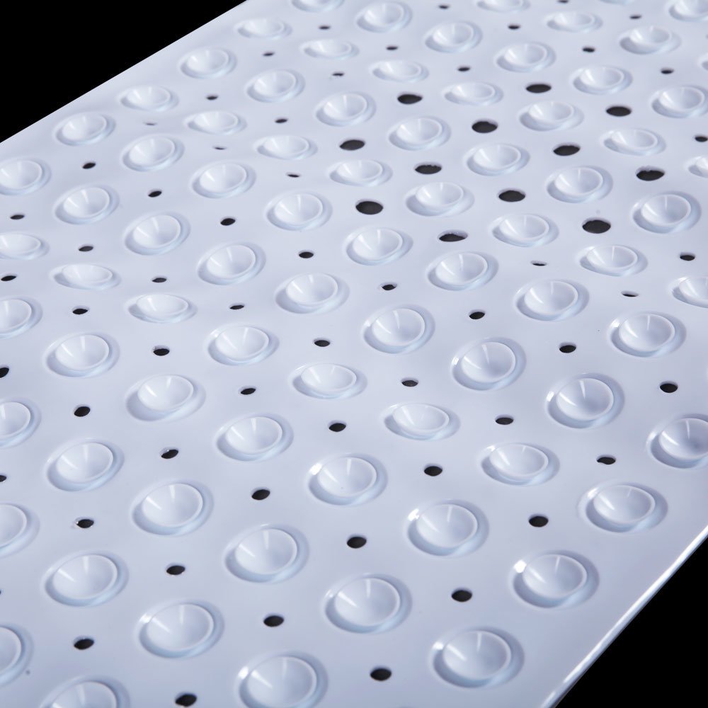 1. HUNDREDS OF SUCTION CUPS: Made of high-quality, allergen-free vinyl. Our antibacterial bath and shower mats feature 200 gorilla grip suction cups that help hold in place on smooth, clean surfaces. This bath mat is a great choice for the home, gym, spa and more