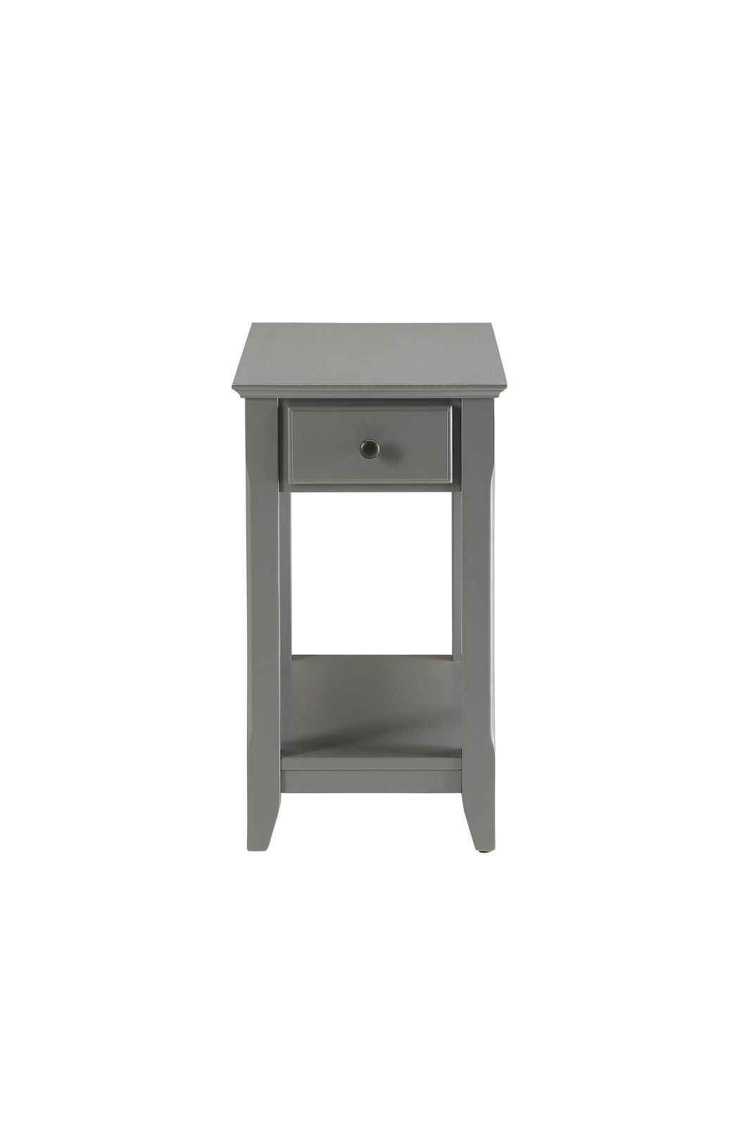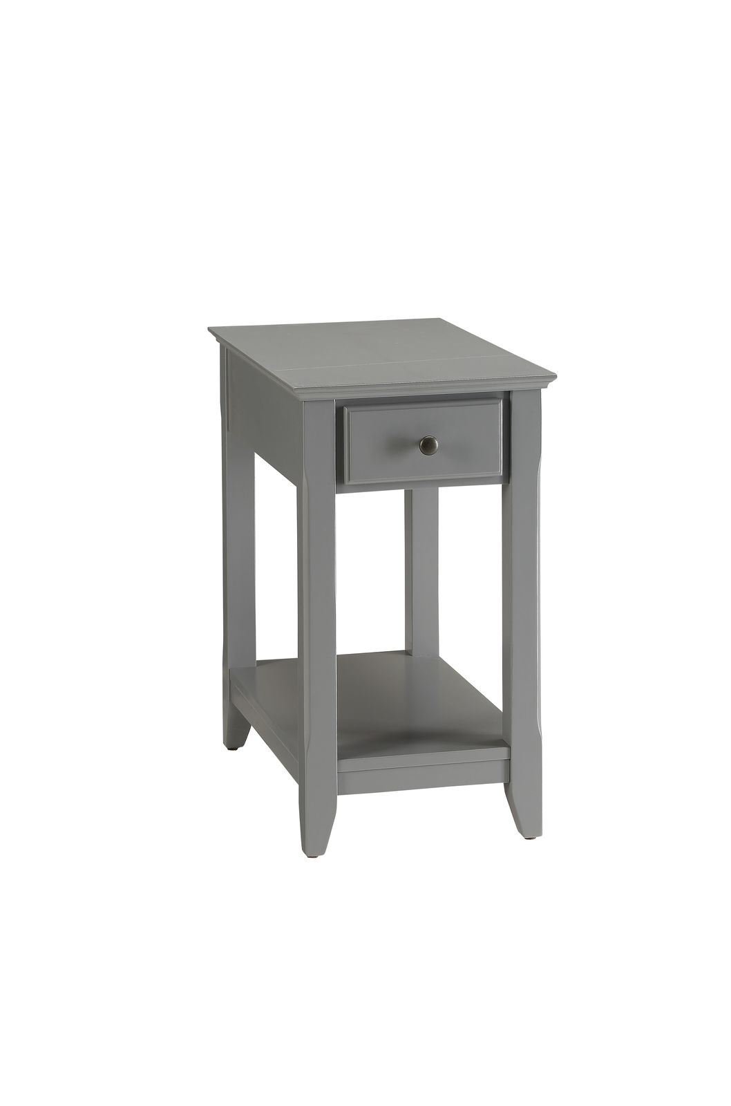 Romance : With transitional styling and skinny footprint; this Bertie side table collection does not take away from living space while still offering open storage as well as a drawer. Offered in four colors white; light green; walnut; and gray. One of them is sure to blend in perfectly with your interiors style.