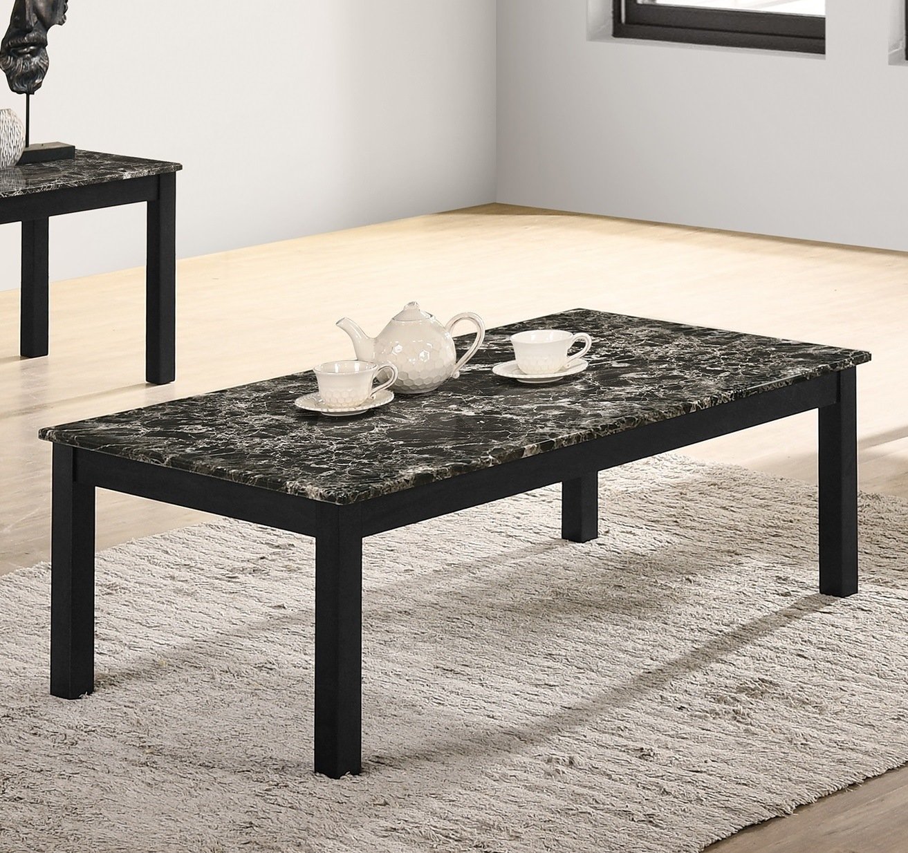 Home > Contemporary Black Faux Marble Top 1x Coffee Table and 2x End Tables 3pc Coffee Table Set Living Room Furniture