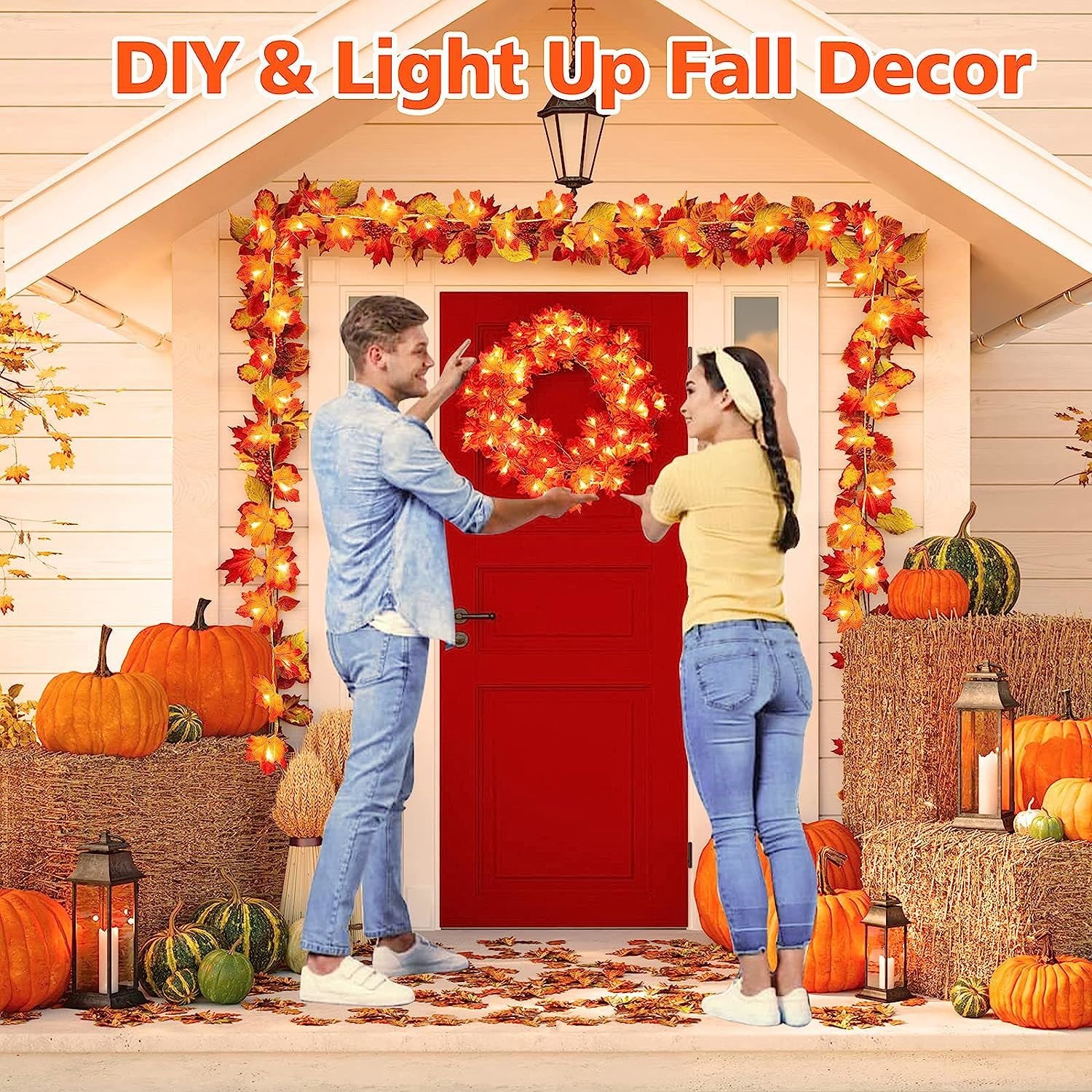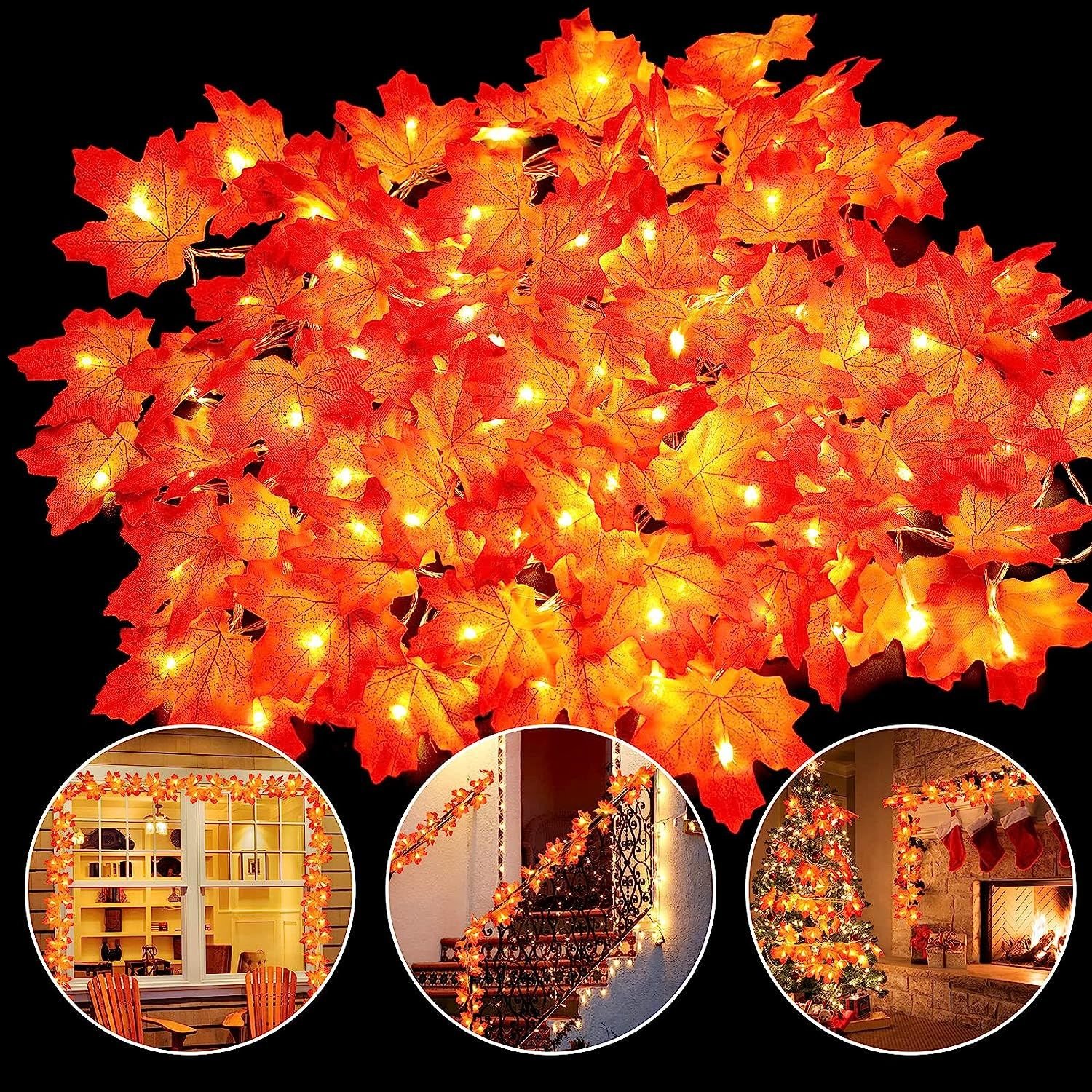 1.DIY & LIGHT UP FALL DECOR: 6m 40 led lights & leaves for each fall home room decor, enough to meet your diverse needs.
