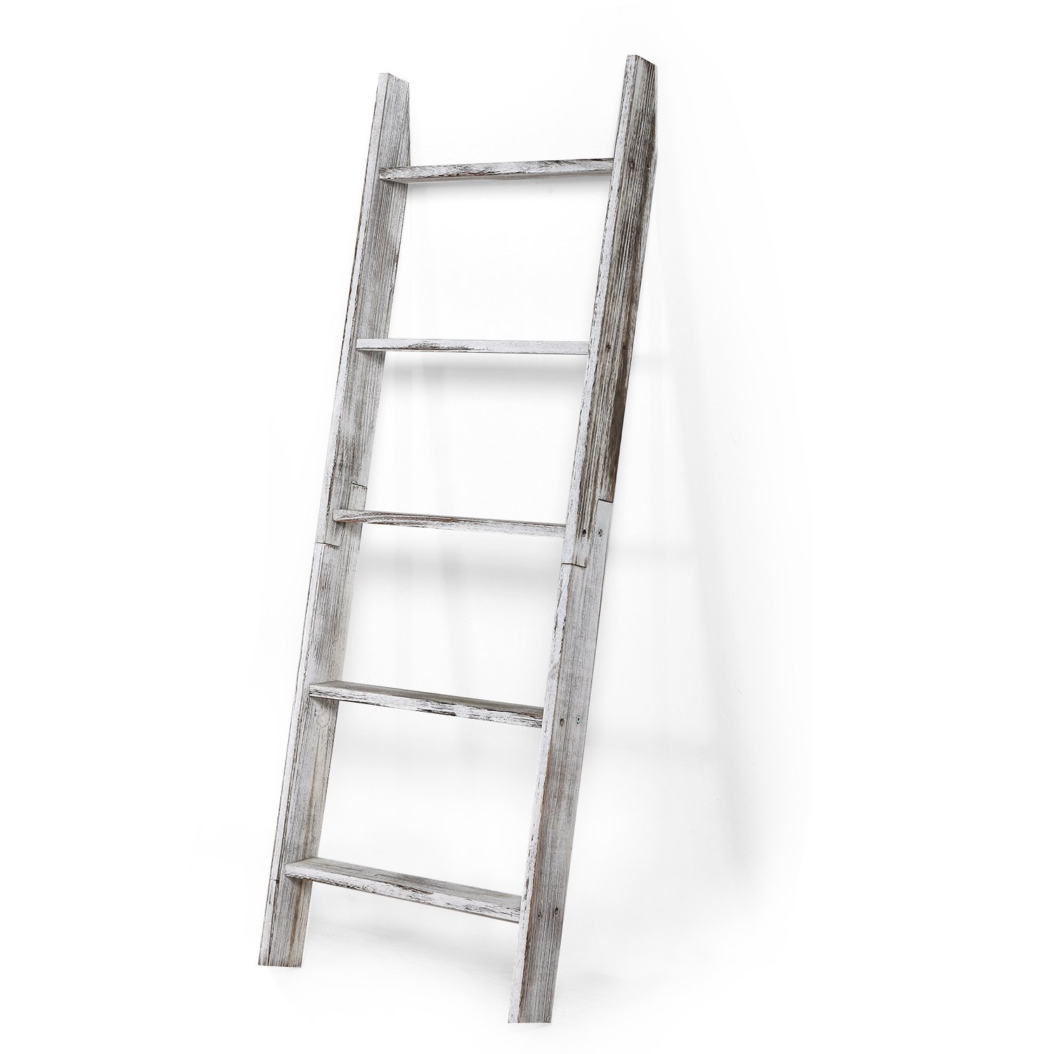- 1 x Farmhouse 4.5 ft Wall Leaning Wood Blanket Quilt Storage Ladder Towel Rack Bathroom Bedroom Decorative Shelf