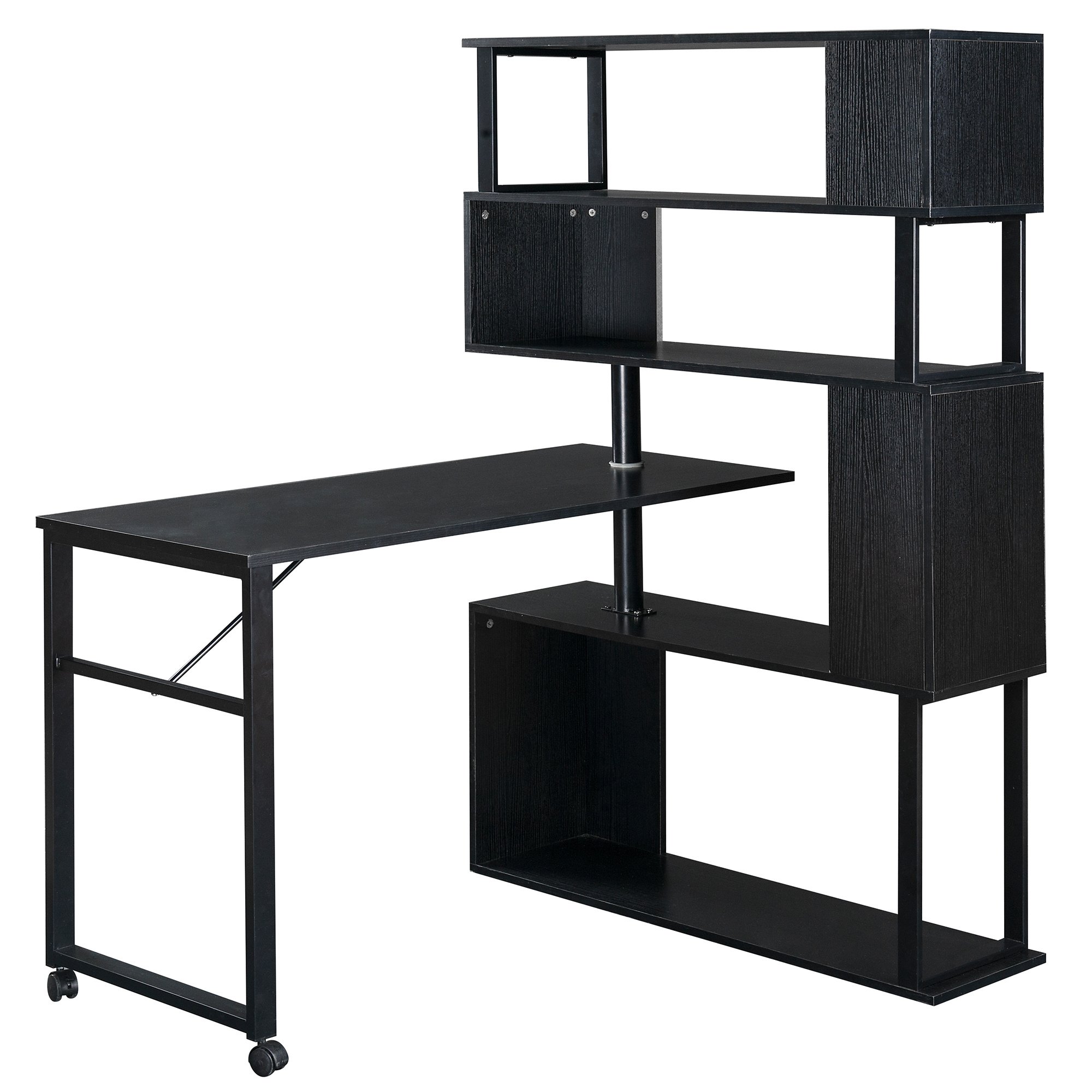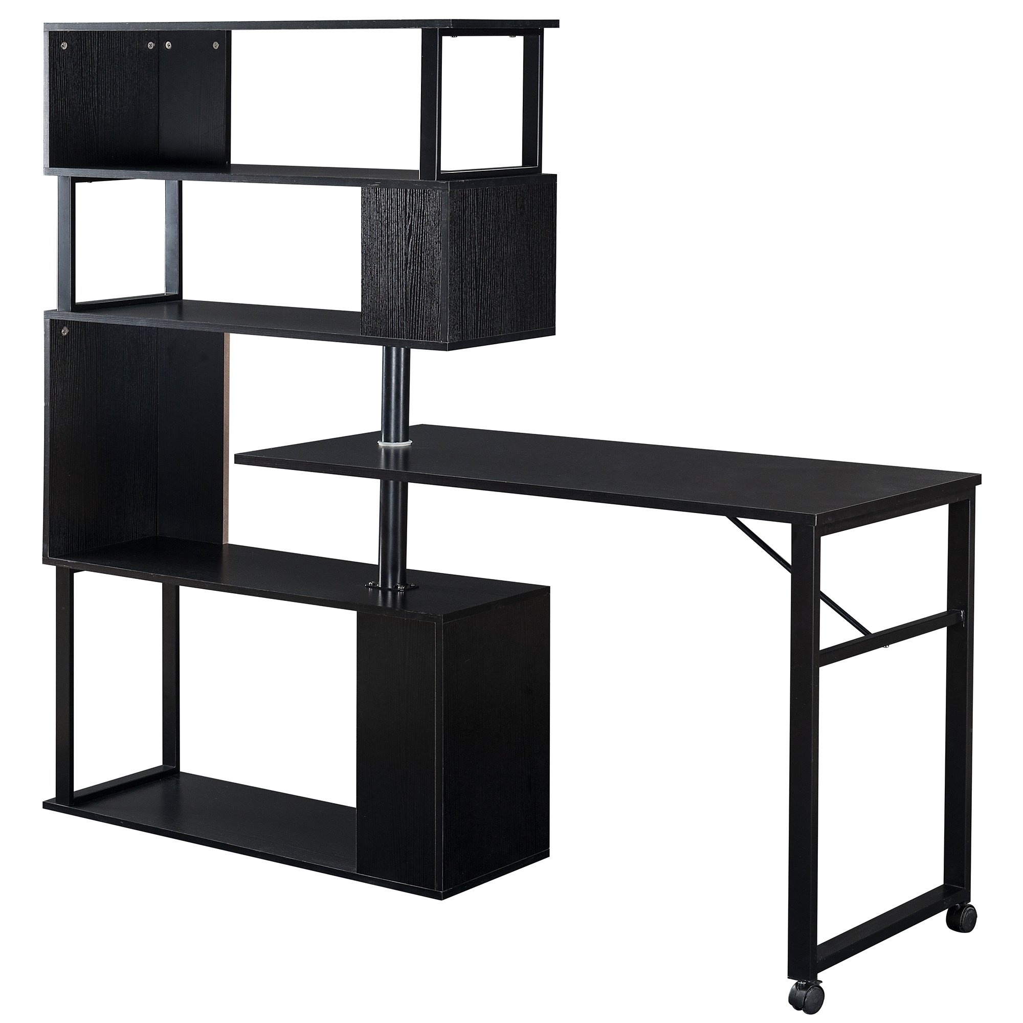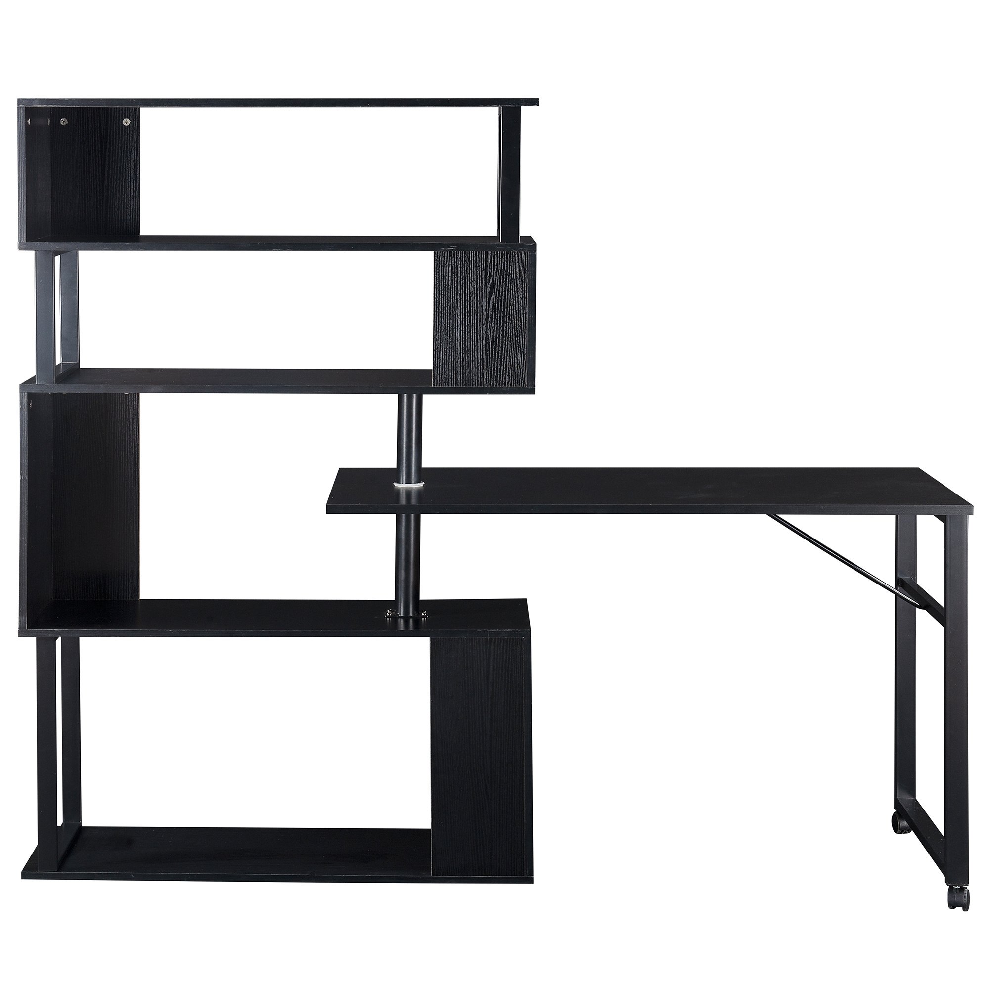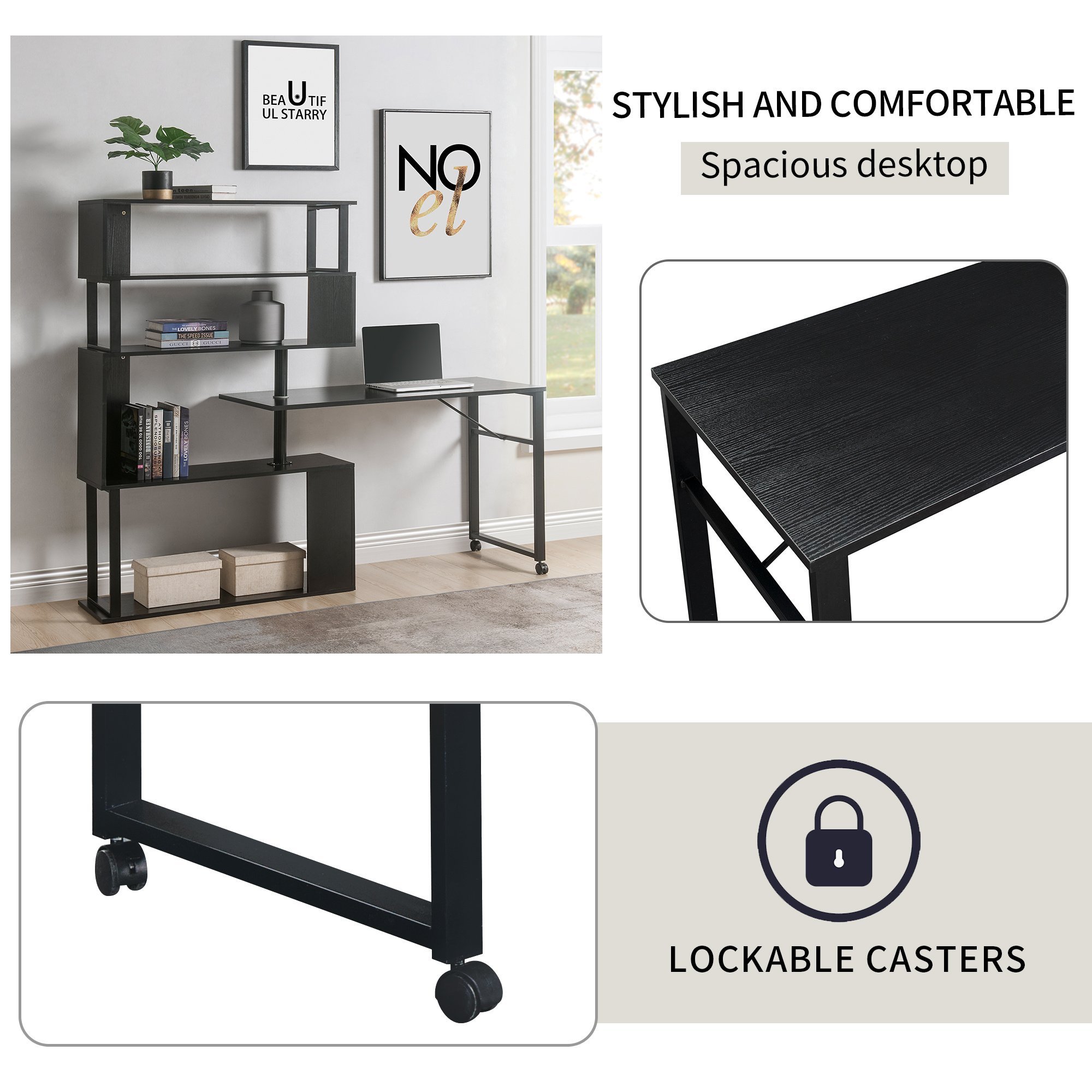 [Four Installation Methods] Design to fit your space and needs, it can be rotated into a 90-degree L-shape or a 180-degree linear shape. A unique contemporary computer desk with shelves creates a conversation piece in any room and adds a chic, functional storage display and desk in one piece of furniture.