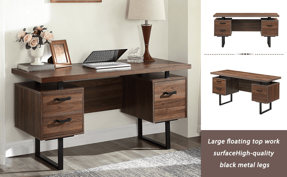 [Ample Surface Space & Leg Room] Ample surface space and leg room with its 27-inch length,offers ample leg room so you can stretch out and work comfortably, Walnut wood look finish provides a modern touch to your workstation; plenty of space for laptop, printer, writing material and other accessories including your coffee!