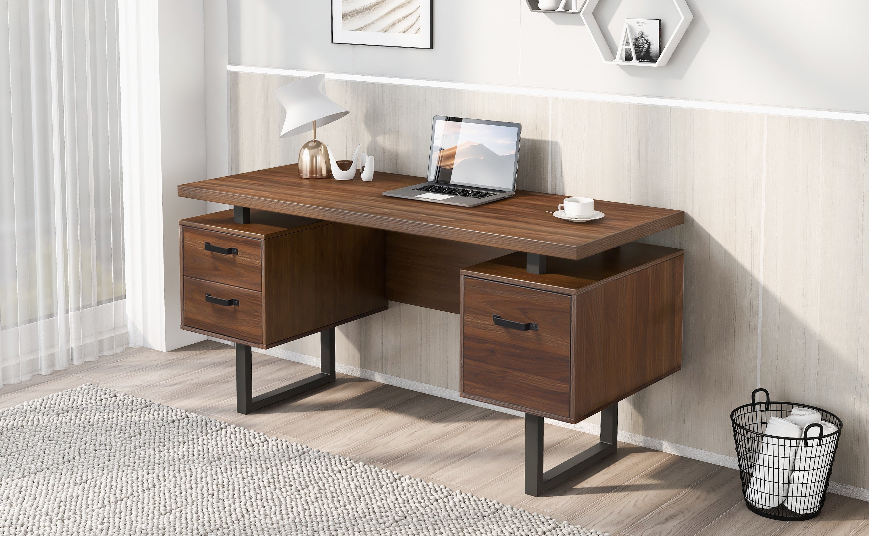 [Spacious Tabletop & Hanging Letter-size Files] Featuring an extra-long, thick panel work surface and durable U-shaped metal legs , this office desk has more than enough storage space with 1 file drawer for letter sized files and 2 storage drawers for any other documents or supplies you need to stow away.