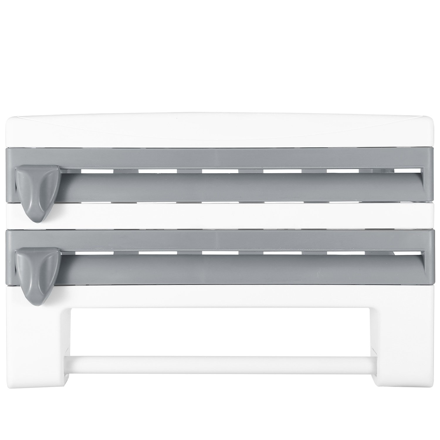 Home > Kitchen Roll Dispenser Paper Roll Holder Plastic Wrap Film Foil Paper Organizer w/ Cutter Wall Mounted for Kitchen Bathroom