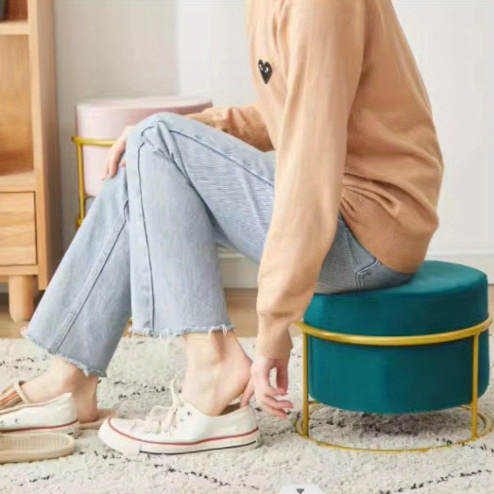 Light luxury padded footstool, fashionable multifunctional dressing stool, circular footstool, metal legs, modern decorative furniturec