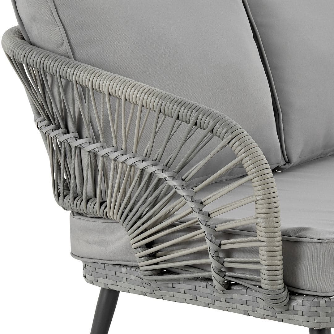Manhattan Comfort Riviera Rope Wicker 4-Piece 5 Seater Patio Conversation Set with Cushions in Grey