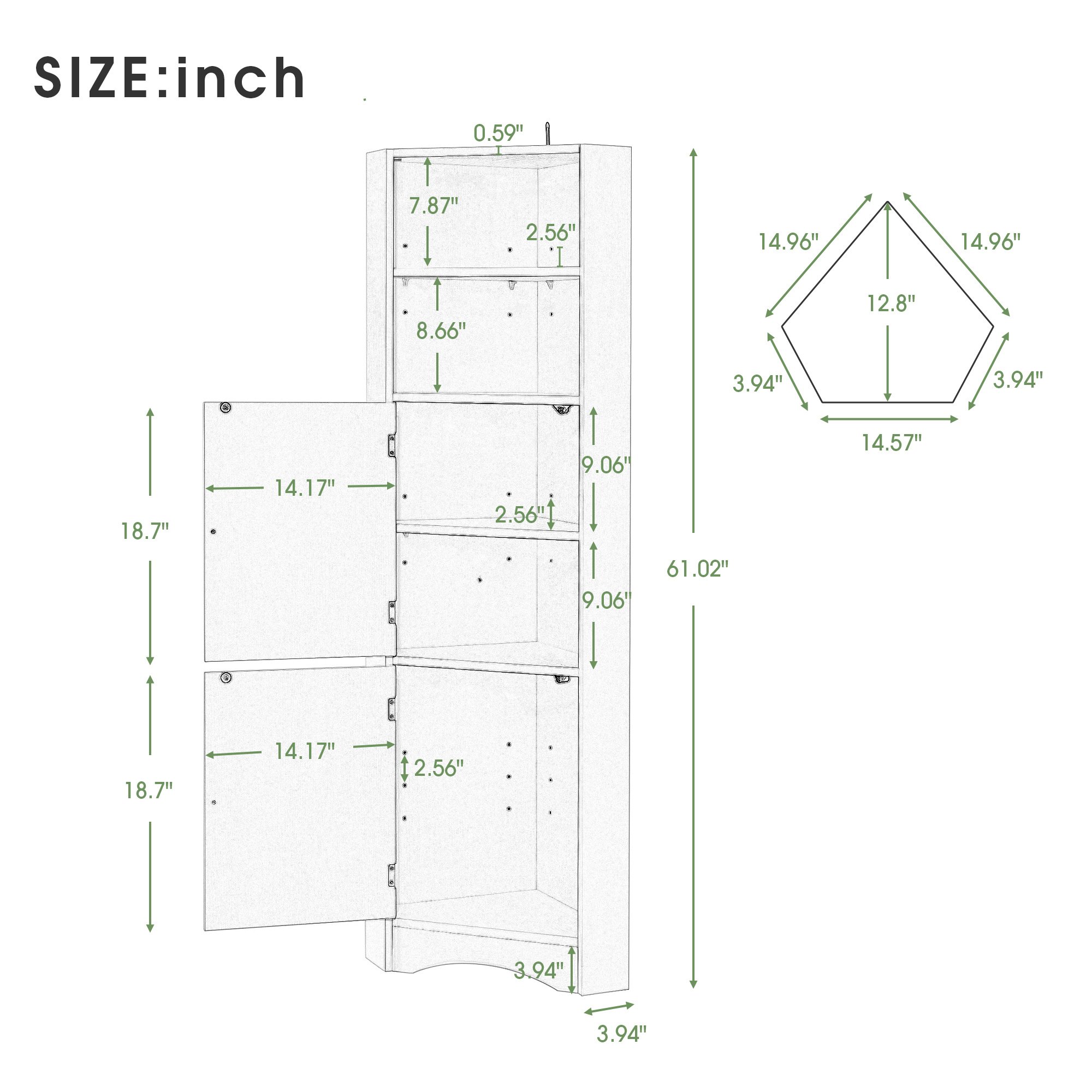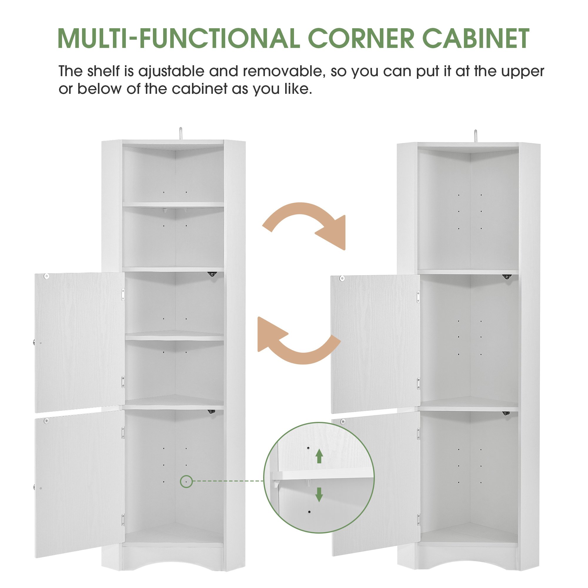 3.[Adjustable Shelves]: This corner cabinet contains two movable shelves that allows you to install it in the up, middle or down part of the cabinet to divide the storage space. What's more, each shelf can be adjusted to different heights according to the pre-drilled holes. It totally satisfies home storage needs.