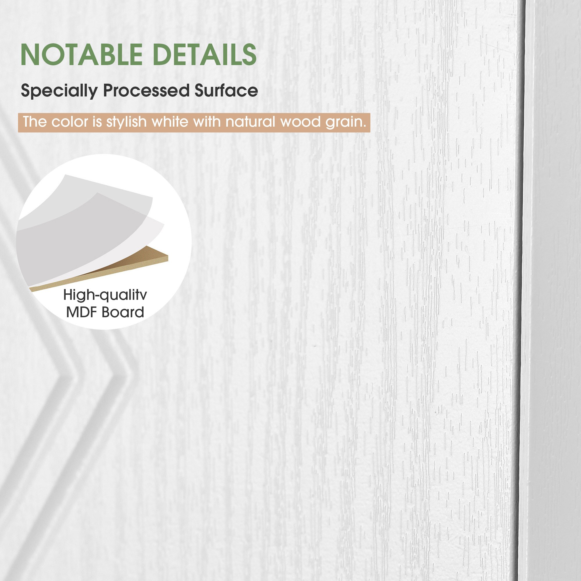 1.[Two Delicate Colors]: This storage cabinet has two colors: white and gray. The white cabinet has a special wood grain surface instead of pure white; the surface of gray one is in brushed finish and has a little shiny stylish silver effect, which also differs under different lights. No matter white or gray, it will perfectly suits for modern or vintage decoration style.