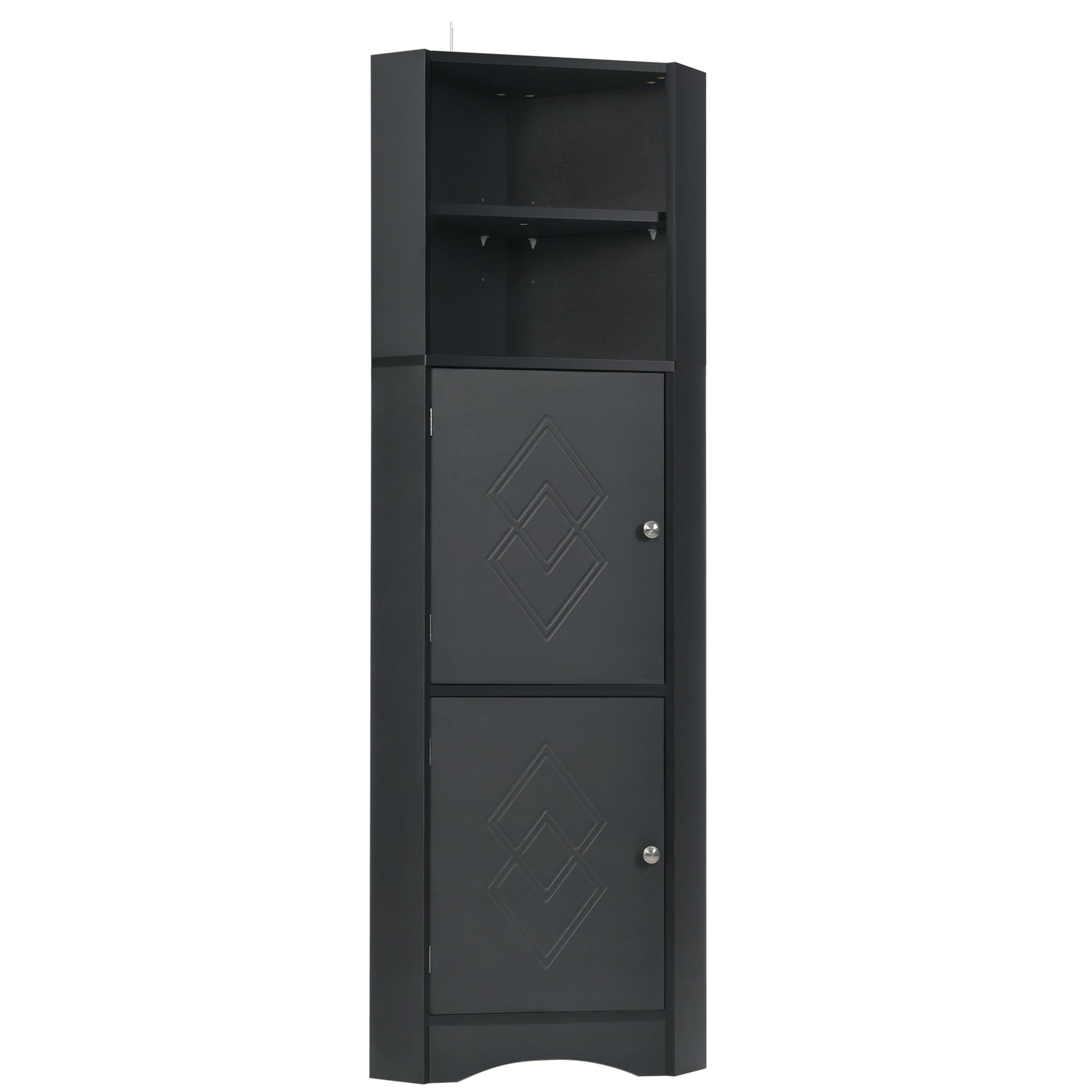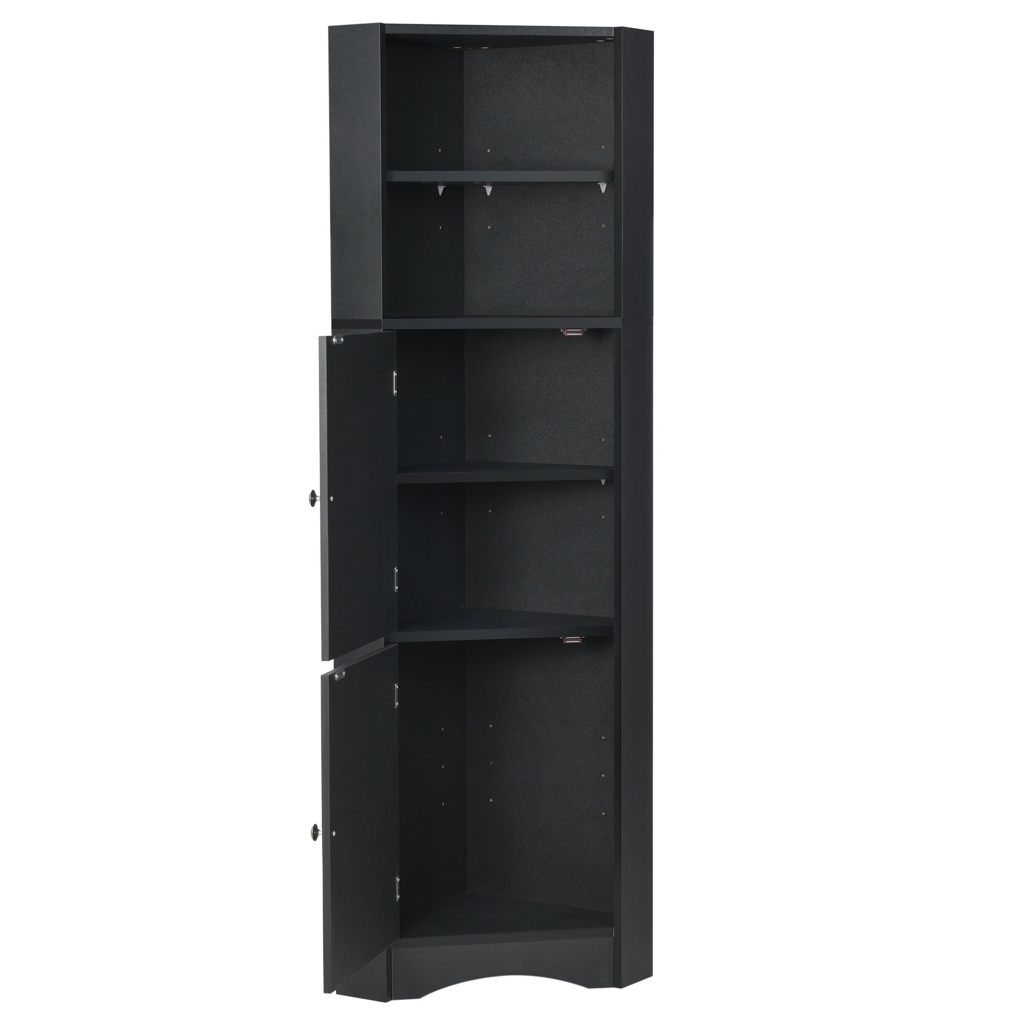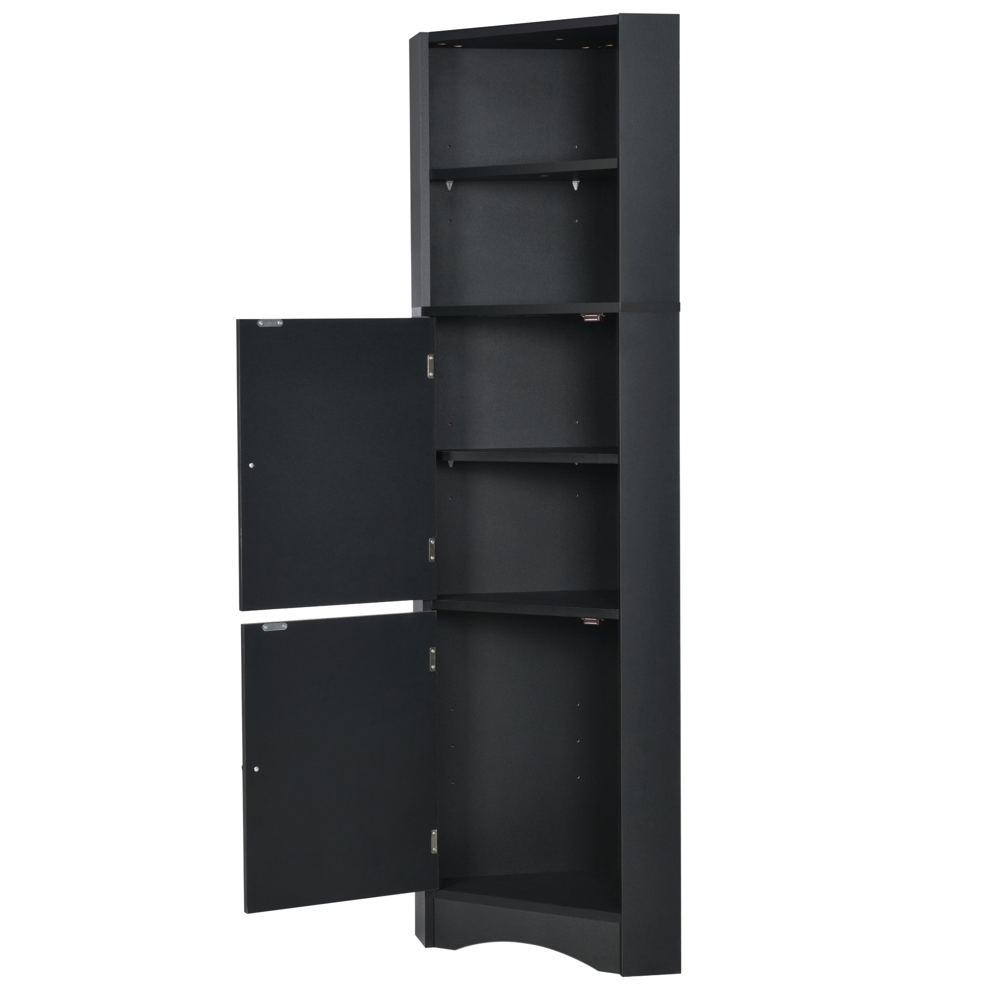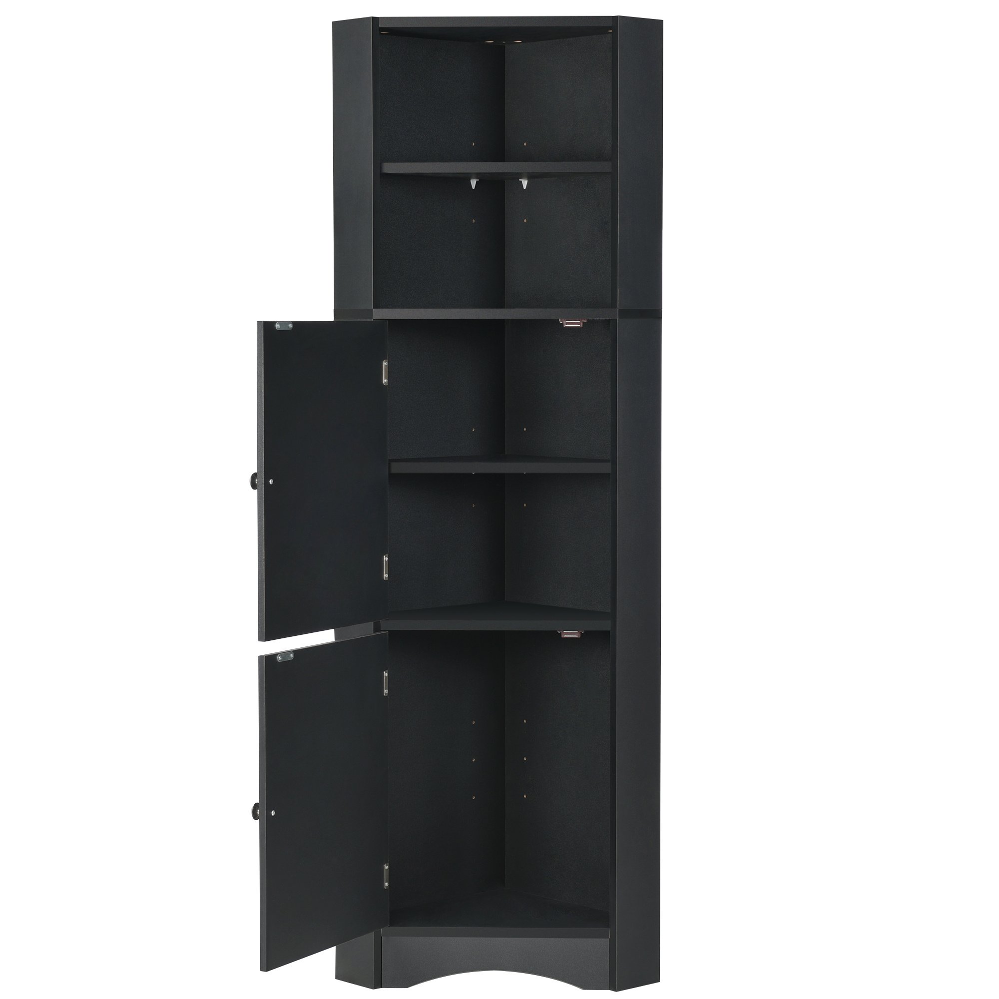 Tall Bathroom Corner Cabinet; Freestanding Storage Cabinet with Doors and Adjustable Shelves; MDF Board