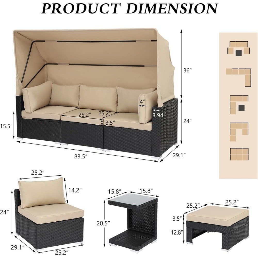 • Multi-level Canopy: The patio daybed set come with retractable canopy, you can enjoy a sun bath in the warm sunshine when closing the canopy or enjoy a cool in the hot weather when opening the canopy. No doubt, this furniture set is perfect for your patio, garden, balcony, deck, backyard, porch and pool.