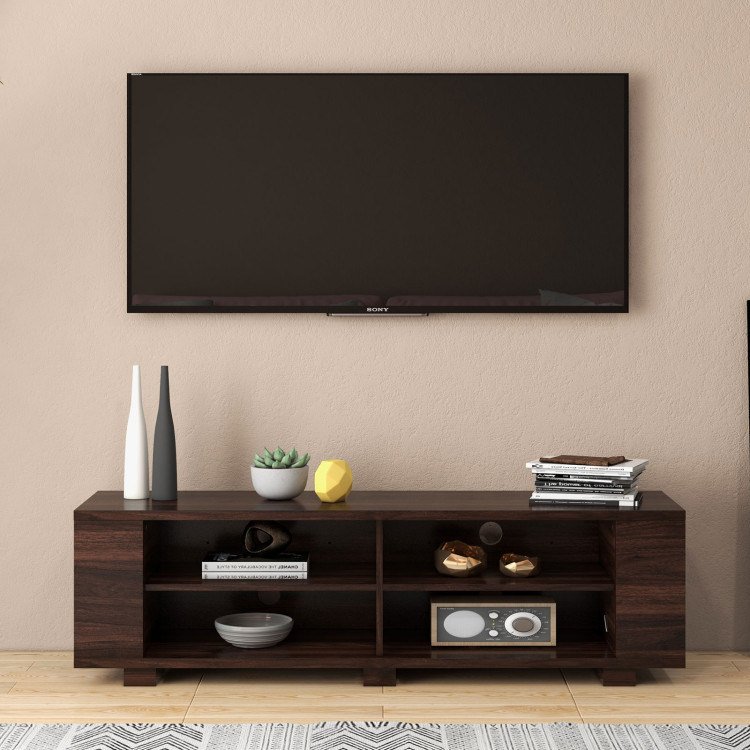 Wooden TV Stand with 8 Open Shelves for TVs up to 65 Inch Flat Screen