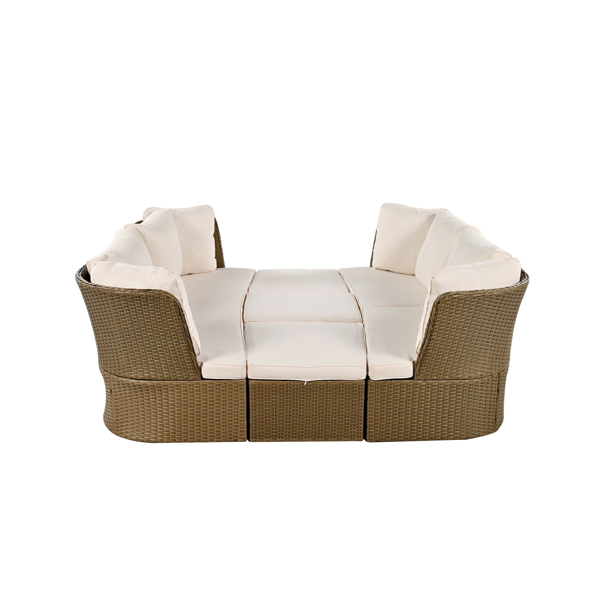 Customizable Outdoor Patio Furniture Set, Wicker Furniture Sofa Set with Thick Cushions, Suitable for Backyard, Porch.