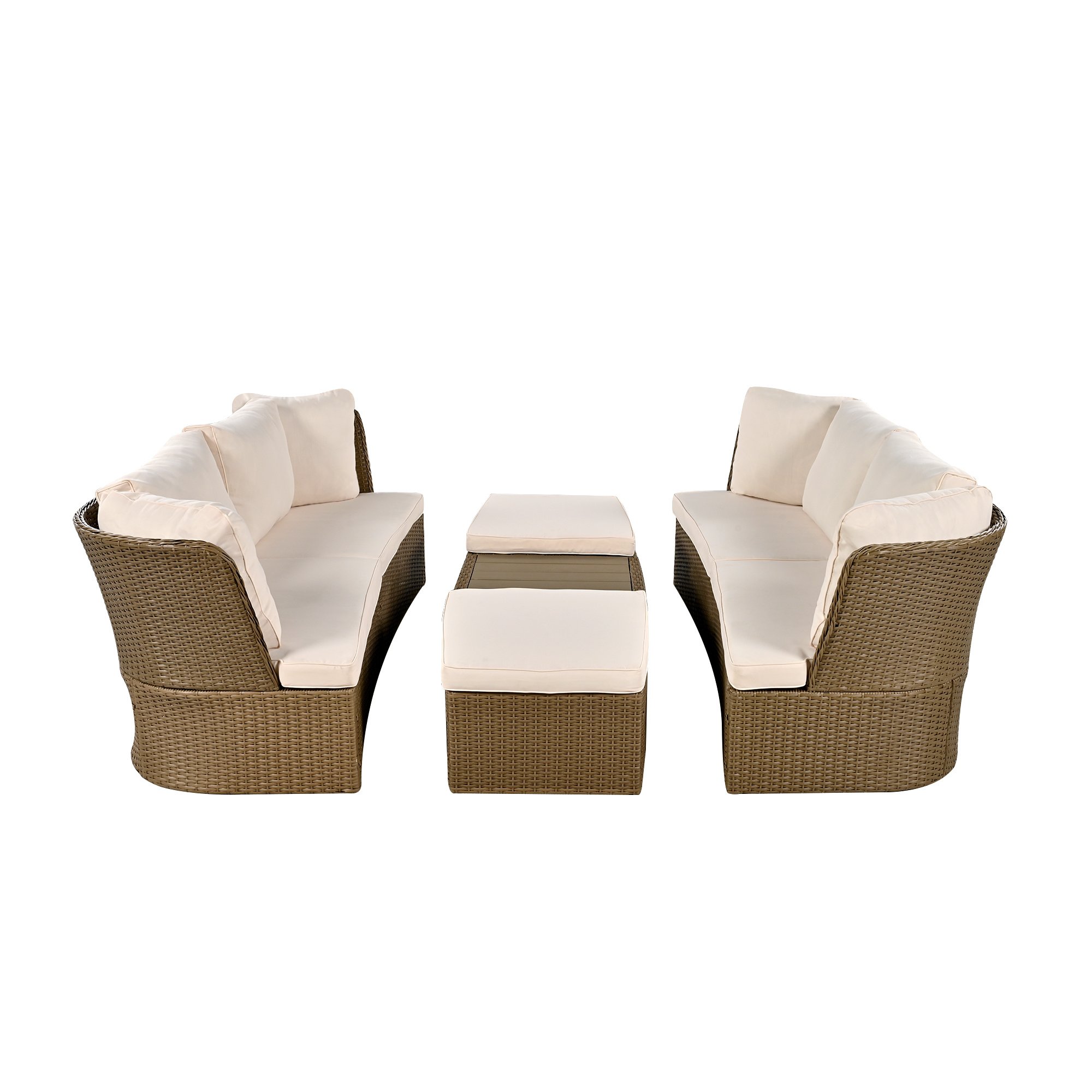 Home > Customizable Outdoor Patio Furniture Set, Wicker Furniture Sofa Set with Thick Cushions, Suitable for Backyard, Porch.