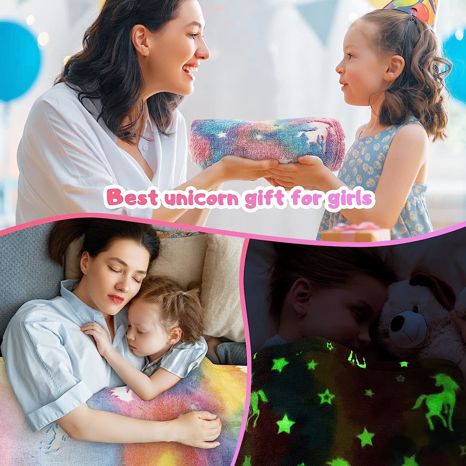 Glow in the Dark Throw Blanket Unicorn - Luminous Kids Blanket (50" x 60")