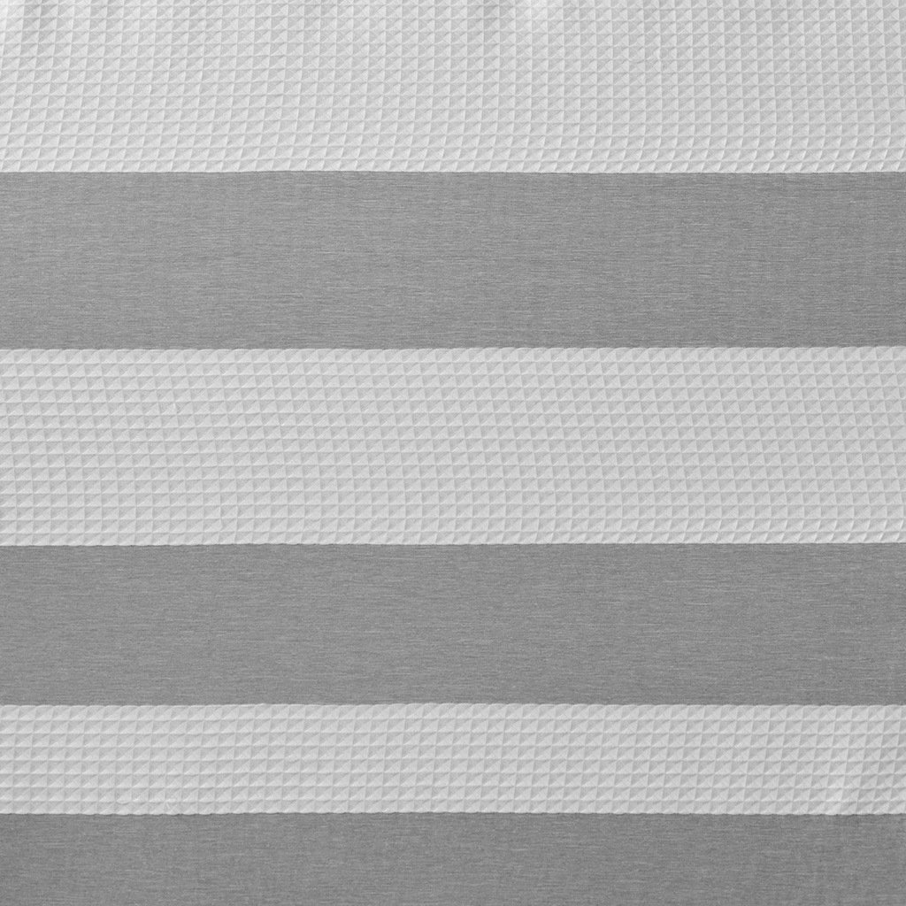 Update your space with the Madison Park Spa Waffle Shower Curtain with 3M Treatment. Featuring a fresh and updated stripe design, this shower curtain is made of a light heathered colored fabric pieced with a white waffle weave base creating a beautiful texture for the perfect spa touch to your decor. A temporary 3M Scotchgard water repellent treatment keeps your curtain looking newer, longer and is active for multiple washes. A waterproof liner is not included but still highly recommended to keep this shower curtain in its best condition; Hooks and Rod also not included and should be purchased separately. Various colors and sizes are available to fit any bathroom space. Size shown in image is standard 72x72", stripe design may vary per all other sizes. Complete the collection with coordinate Spa Waffle Bath Towel and Spa Cotton Bath Rug, available and sold separately.
