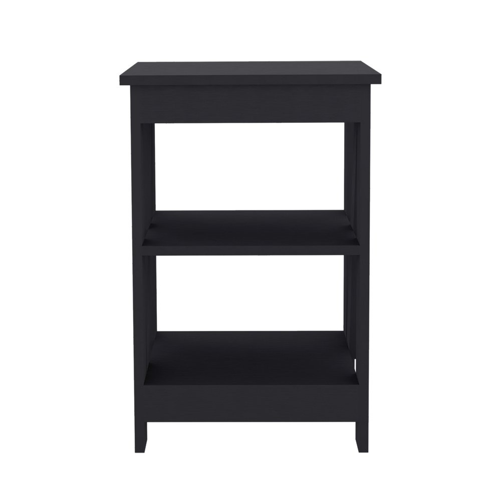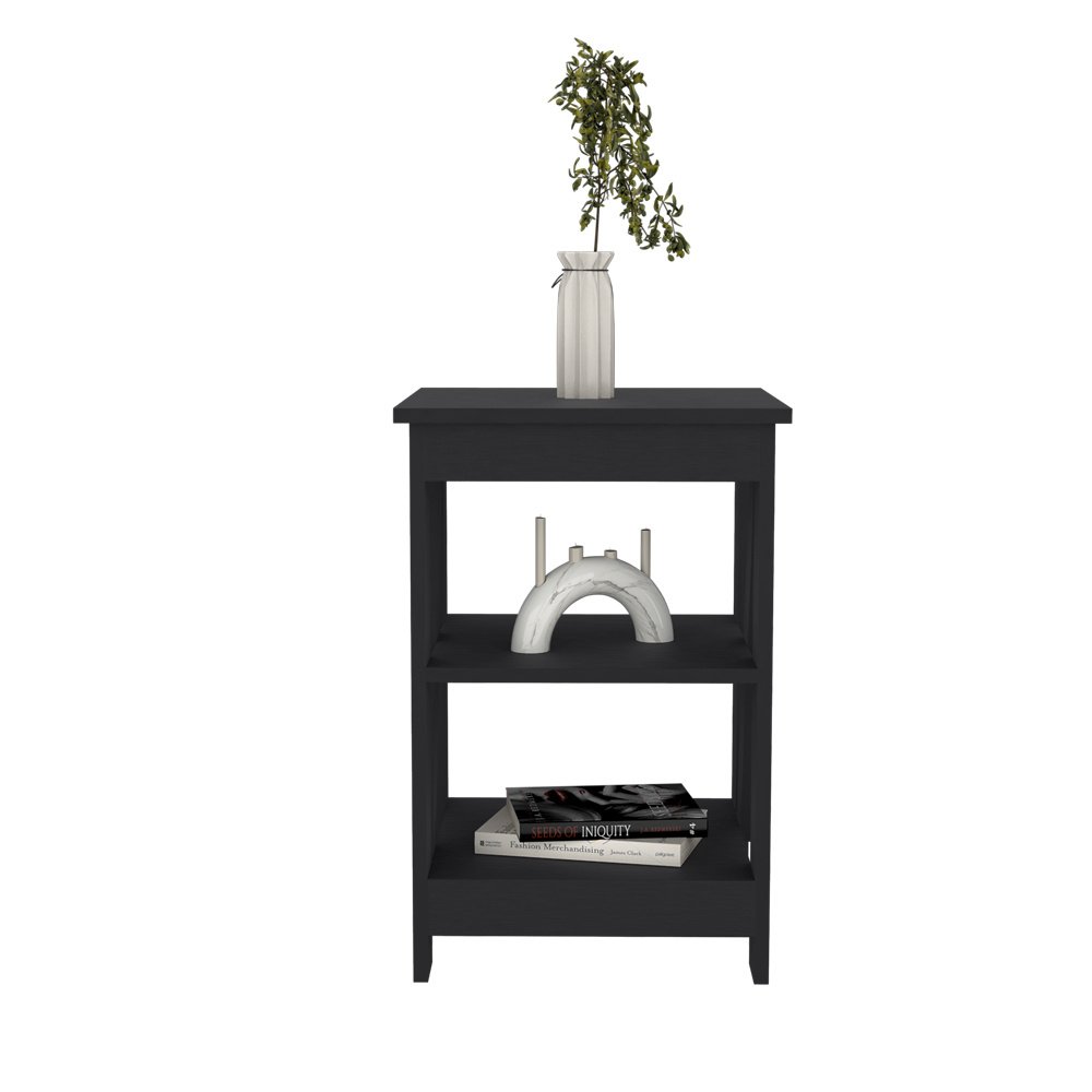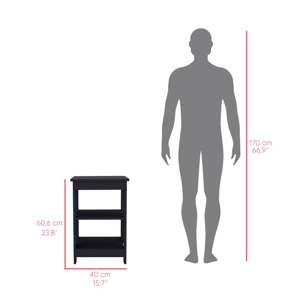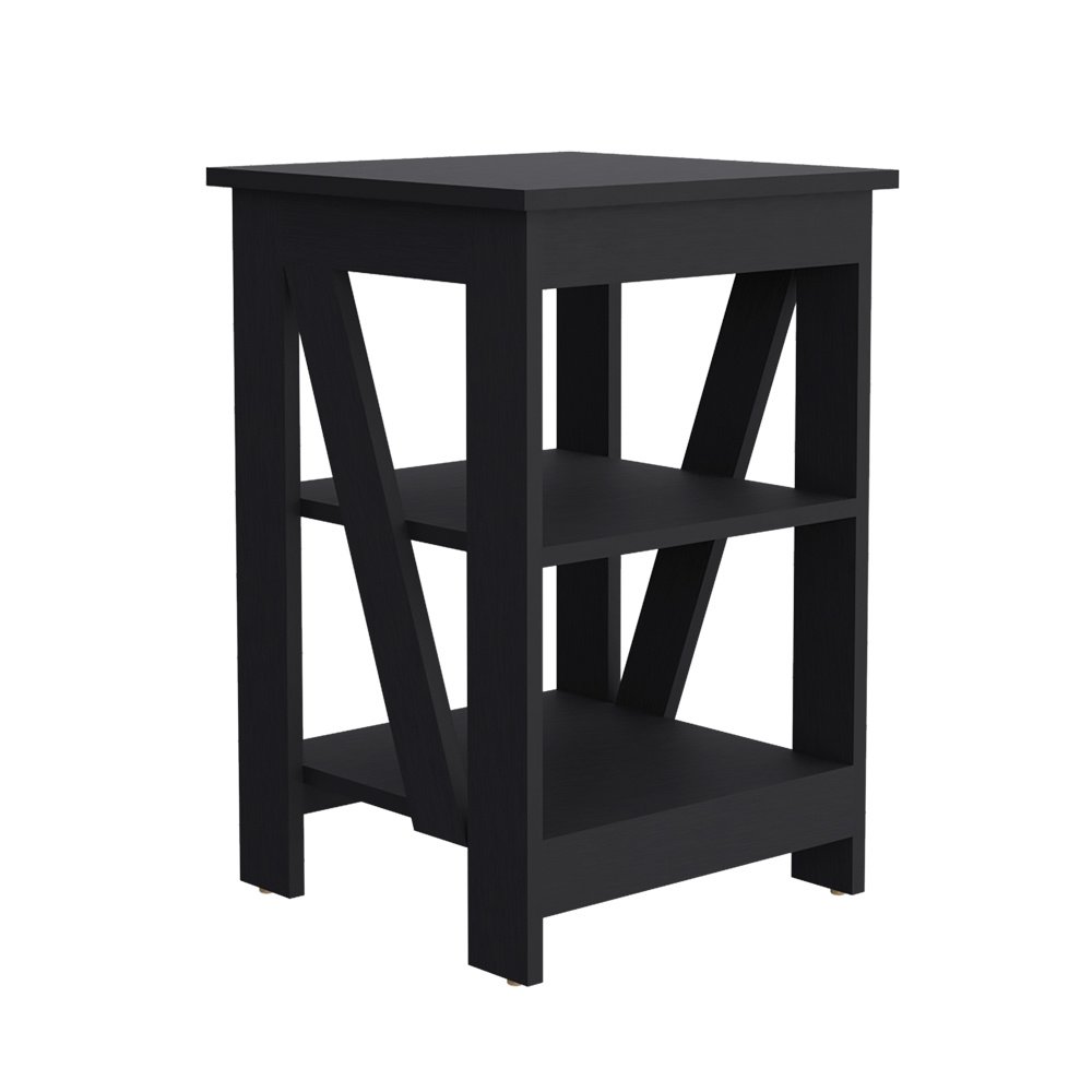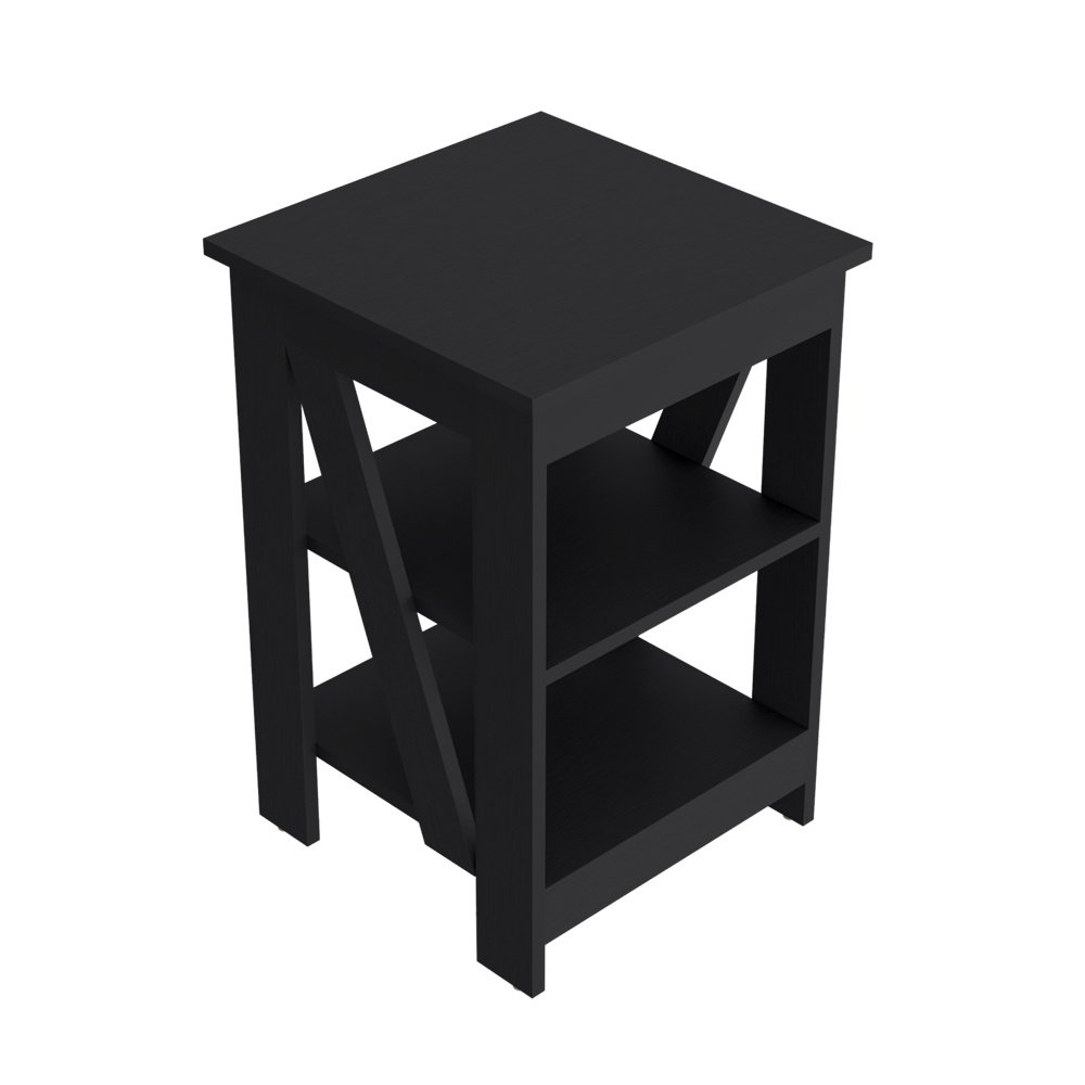 Enhance your living room with the versatile and stylish Side Table Rossville. Crafted from high-quality black manufactured wood, this side table offers a sleek design that complements any decor. The Side Table Rossville is perfect for any space, measuring 23.8" in height, 15.7" in width, and 15.7" in depth. It features two open shelves for ample storage, allowing you to keep your living room organized and clutter-free. Dimensions: Height: 23.8'Width: 15.7' Depth: 15.7'Furniture Type: Ready to assemble (full assembly required).Certifications: CARB phase II compliant – TSCA Title VI Compliant.Warranty: 1-year warranty coverage in wooden parts- 1-year warranty coverage in hardware pieces since its manufacturing date is found in the lot number printed in the product box.Shipment details: Free shipping to the 48 contiguous states - delivery time: Between 2 and 5 days, depending on the customer's location, season, and weather factors.Other details: This product does not include decorative or background elements; Check that the box is in good condition and well packed and check with the help of the manual that the corresponding parts have been included; For more information regarding warranty, shipment details, cancellations, returns & replacement parts go to the bottom section of our website to learn more; Installation & Assembly Instructions included.