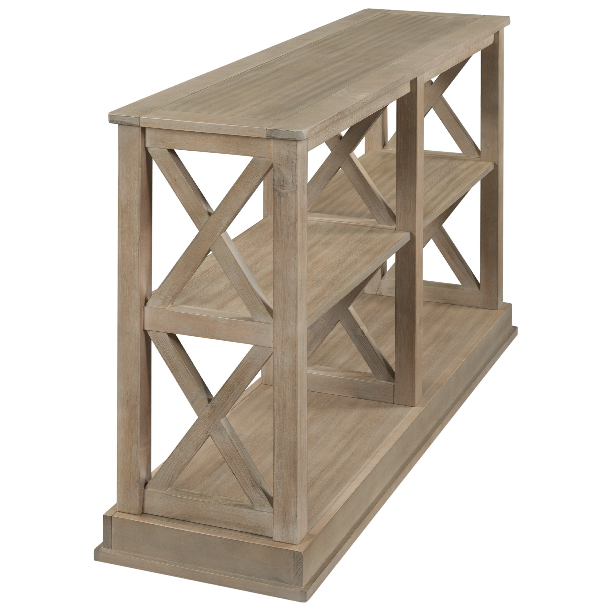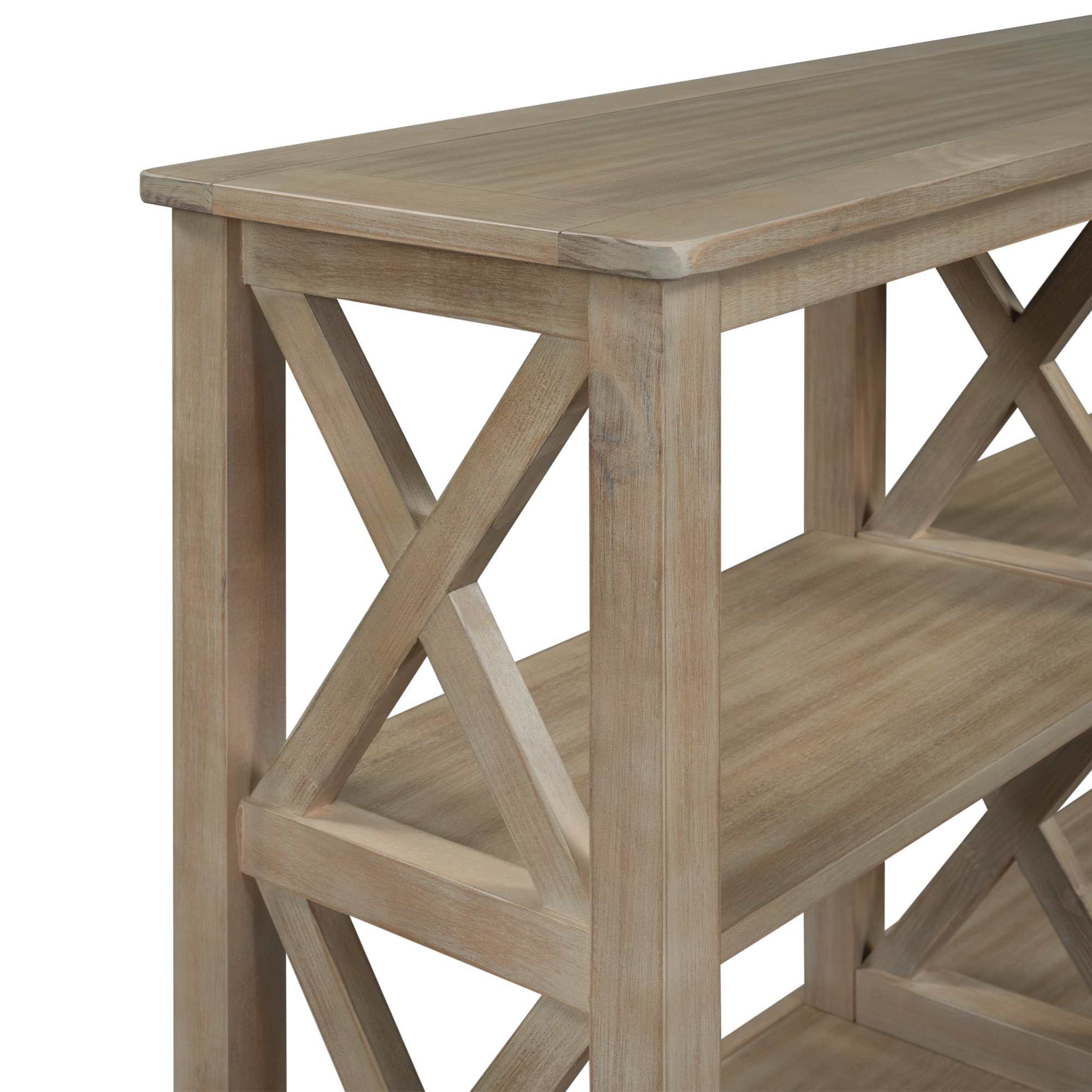 TREXM Console Table with 3-Tier Open Storage Spaces and 'X' Legs, Narrow Sofa Entry Table for Living Room, Entryway and Hallway (White Wash)