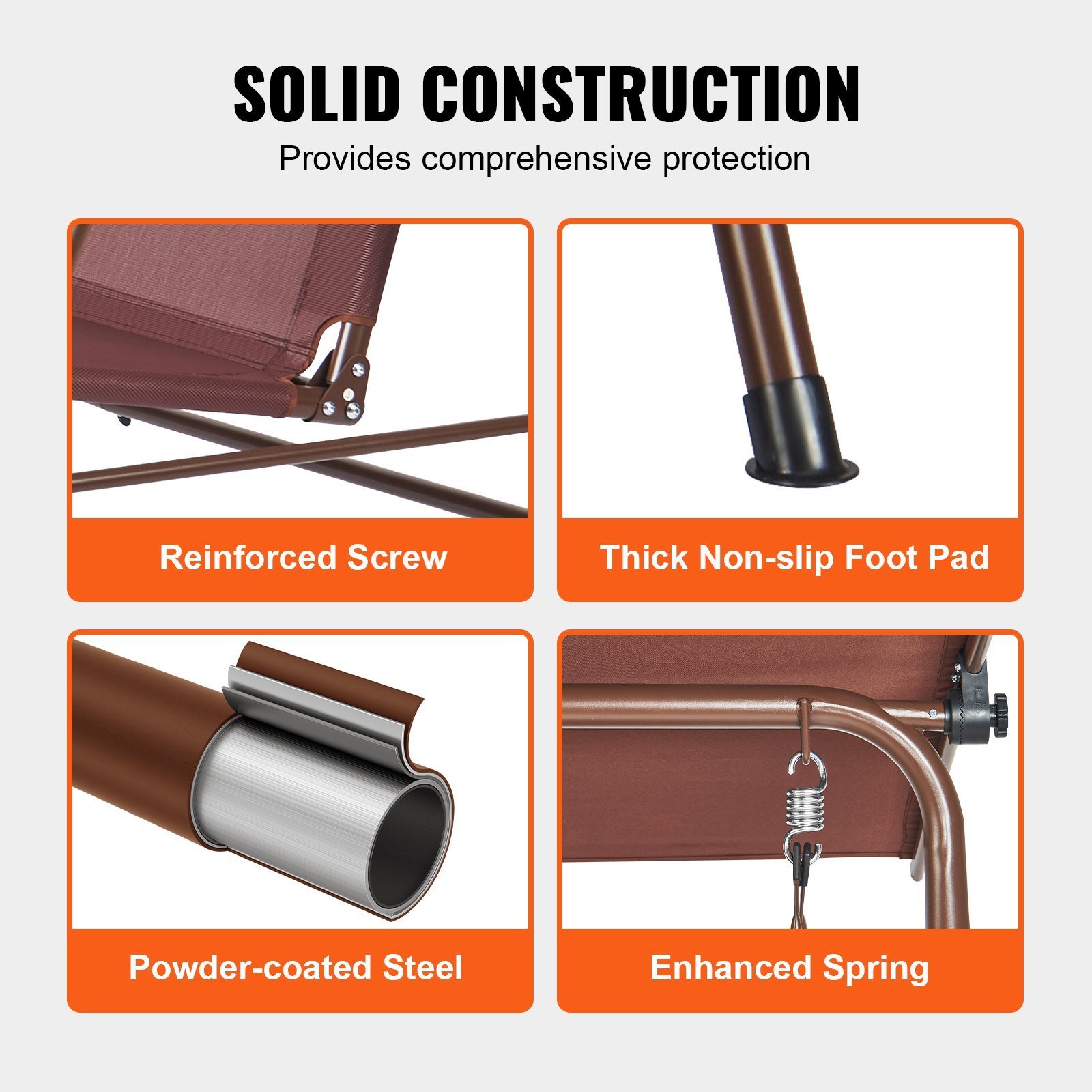VEVOR 3-Person Patio Swing Chair, Outdoor Patio Swing with Adjustable Canopy, Porch Swing with Armrests, Teslin Fabric and Alloy Steel Frame